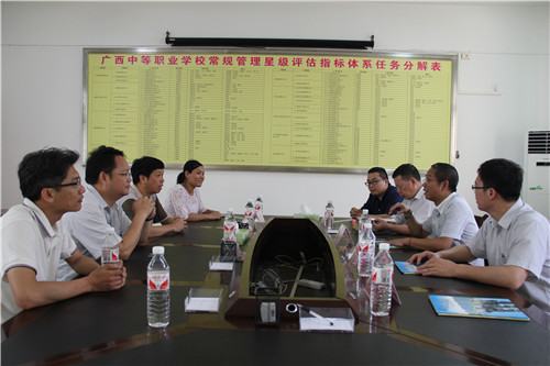 在北部湾职业技术学校,得到了该校王增祥副校长、刘飞副校长的热情接待。双方就加强校际合作、探索人才培养新模式、提高学生实践创新能力、拓宽学生职业技能培训渠道等全方位的合作进行了洽谈。座谈会后,梁军书记一行参观了学校校园。