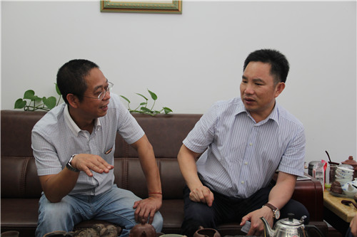 梁书记与钦州石化产业办张绪东(右一)洽谈