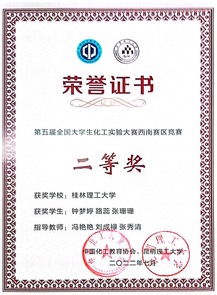 组织化学工程与工艺专业2020级74支队伍222人参加了西南赛区的选拔赛,最后有4支队伍12人进入西南赛区决赛(云南,昆明理工大学进行)。西南赛区决赛于2022年7月9日至12日由昆明理工大学承办,并组织线上进行。