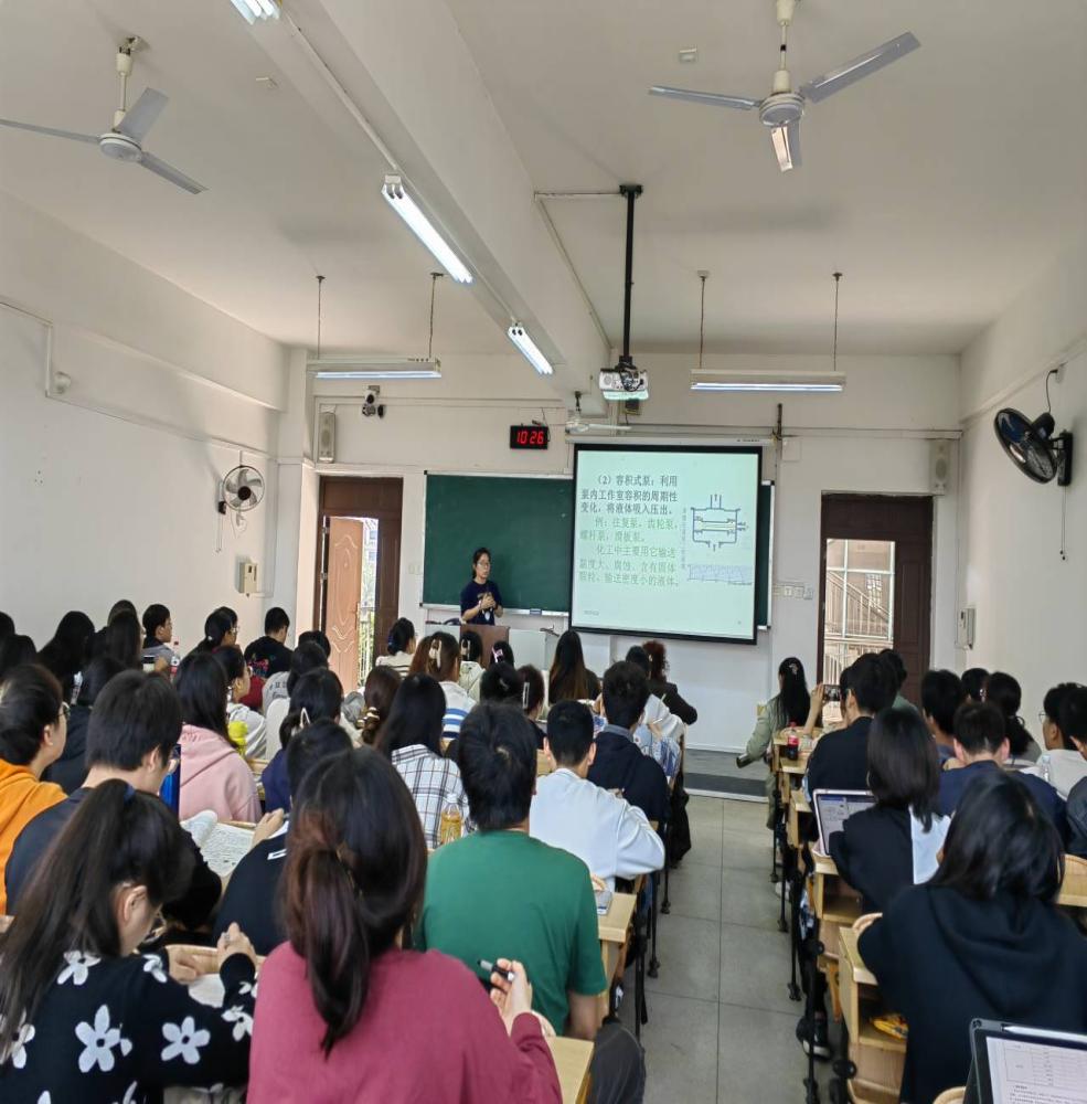 姚金环老师主讲《化工原理》中“离心泵的结构及性能曲线分析”的内容。课程采用雨课堂签到,教学内容思路清晰,讲解由浅入深,同时穿插课堂提问和课堂练习,学生积极参与课堂互动;邹志明老师主讲《大学化学》中“化学平衡的移动与应用”的内容,课堂氛围轻松活跃,以学生为中心的教学理念得到了具体的体现;王晓娟老师主讲《化工设计》中“设备选型及校核”的内容,循序渐进向学生展示了化工设计过程中选用的设备如何做到既“合理可行”又具备“最大化的经济效益”。