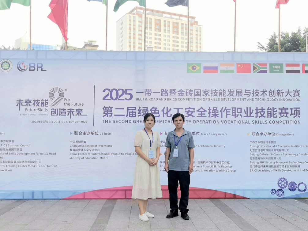 大赛作为金砖国家框架下的重要技能赛事,致力于推动“一带一路”与金砖国家在绿色化工领域的技术融合与人才共育,助力化工行业安全、绿色、可持续发展。赛事期间,两位老师参观了广西工业职业技术学院化工原理实验装置,此次参赛提升了教师在绿色化工与安全操作方面的教学与实践能力,为培养符合行业需求的高素质化工专业人才积累了宝贵经验。
