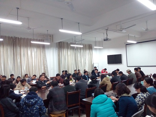 在雁山校区12217会议室召开了2016年教职工暨工会会员大会,学院全体教工参加了会议,会议由学院党委书记、学院分工会主席梁军主持。