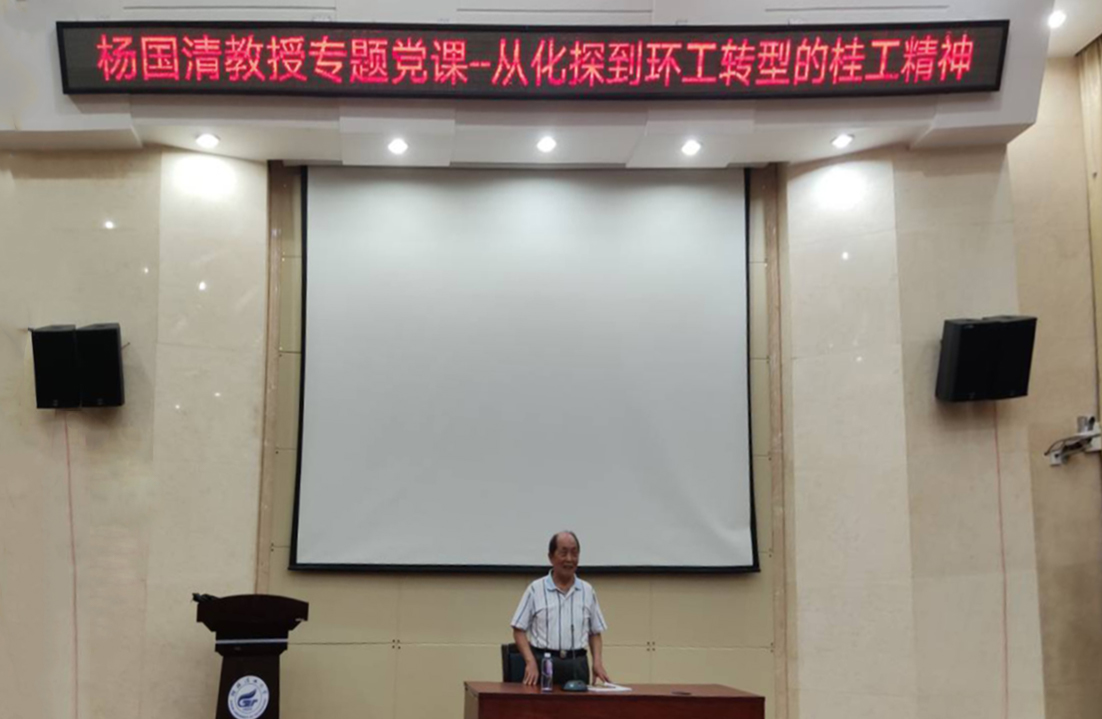 党委和环境科学与工程学院党委联合邀请学校退休干部杨国清教授于6月9日下午在萃华楼报告厅开展《从化探到环工转型的桂工精神》专题党课。本次党课由环境科学与工程学院党委书记姜子亮同志主持,韩漫h