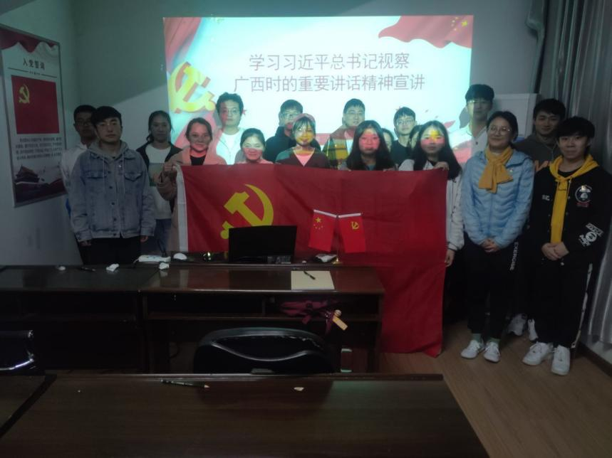 为学习贯彻习近平总书记来广西视察时的重要讲话,深刻领悟其讲话精神,增强支部成员的思想政治觉悟。11月7日下午,本科生第三党支部在09607开展“学习习近平总书记视察广西时的重要讲话精神”专题学习会,本次宣讲会由岳誉华同志主持。