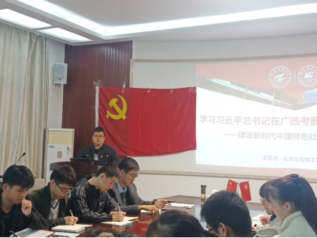 本科生第一党支部在12217会议室顺利召开学习习近平总书记视察广西时的重要讲话精神主题党课。支部全体党员参加本次党课,党课由支部书记王凯浩同志主持。