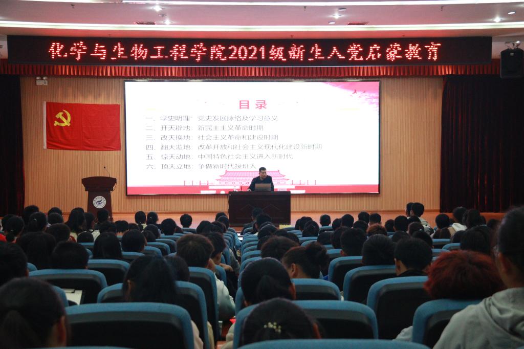 为增强学院2021级新生对党的认识,端正入党动机,了解组织最新发展情况和学习习近平新时代中国特色社会主义思想。10月19日下午在雁山校区图书馆报告厅,学院党委书记彭代江为2021级新生做“信仰启航,青春飞扬”为主题的入党启蒙专题党课。全体辅导员出席本次会议,2021级全体新生到场聆听本次党课。大会由学院党委副书记李南同志主持。