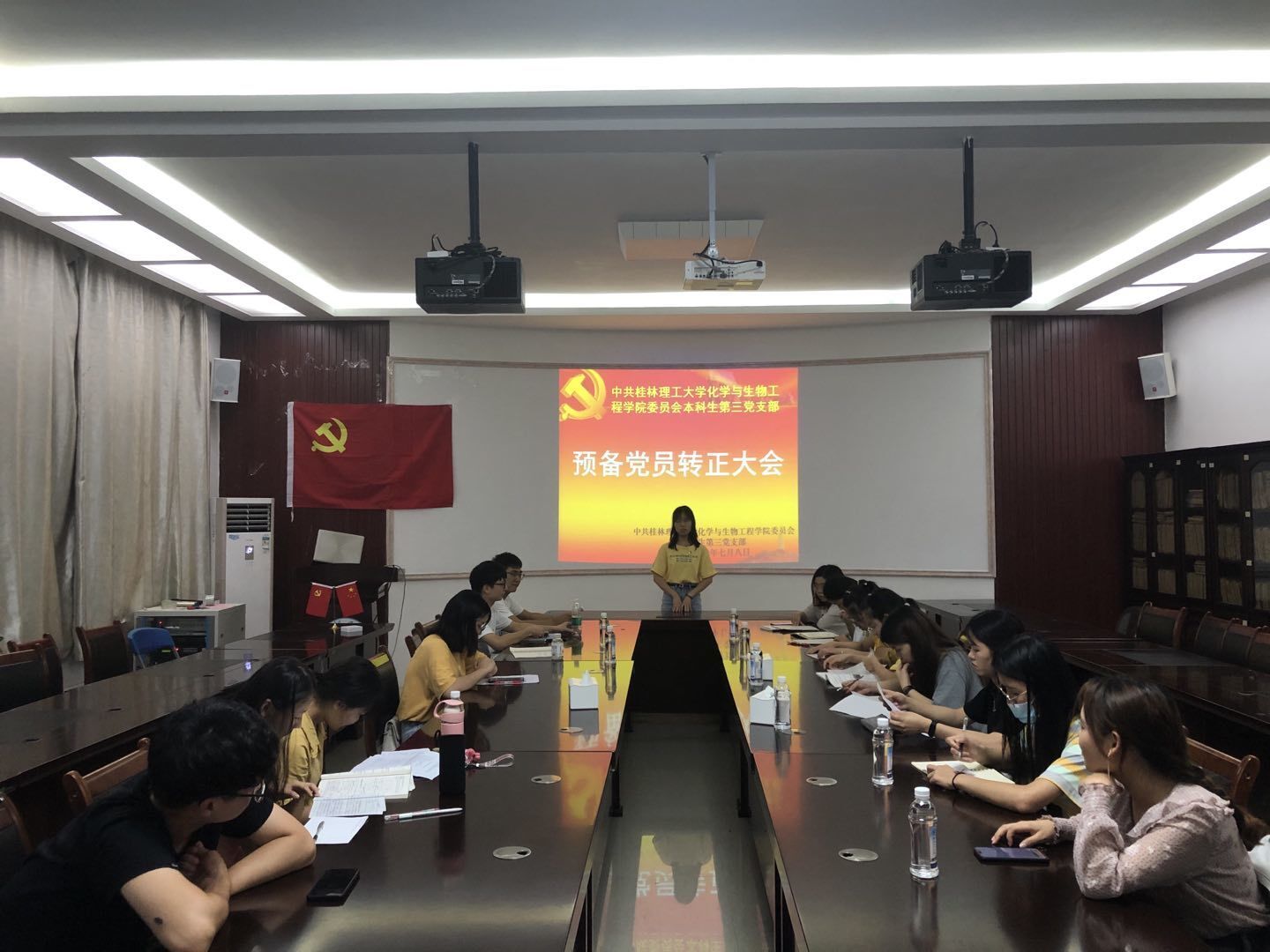 本科生第三党支部于雁山校区萃华楼12217召开预备党员转正大会,讨论劳洁同志的转正问题,会议由支部书记熊艳老师主持,支部全体党员同志参加。