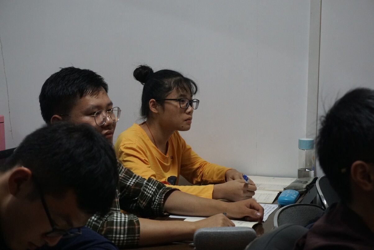 会议开始,由陈楠同志宣读大会议程,说明发展对象推优的重要性以及本次大会的目的。接着入党积极分子分别上台陈述入党动机、对党的认识,并总结自己在成为积极分子一年来,在思想、工作、学习、生活上的改变,开展批评与自我批评。在每个入党积极分子陈述结束后,支部的党员与预备党员对其陈诉内容进行提问考察,提问内容涉及时事政治、工作、生活、党的理论知识、学习,期间党员同志对各入党积极分子所存在的问题提出建议以及改正方法。最后由全部党员同志讨论投票表决,经过慎重的考虑与长时间的考察,最终何丽、陈文俊、郑靖萱、杨帆四人全票通过成为发展对象,而刘振轩、盛奥、徐月姬三人分别有三票弃权而不能成为本届发展对象。