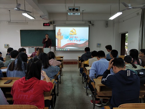 学生党员更加自觉地为实现新时代党的历史使命而不懈奋斗,10月24日在雁山校区06102教室,学院党委副书记李南以“‘赶考’路上,全面从严治党”为主题给学生党员及主要学生干部上了专题党课。研究生第一党支部全体党员及团委、学生会主要学生干部参加了此次党课学习。