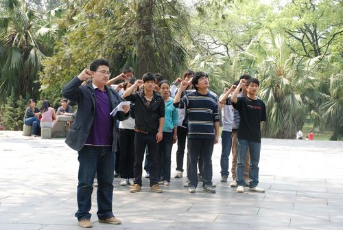 本次祭扫活动由院团委社会科技部部长陈鹏同学主持。他首先向大家介绍了陈光烈士可歌可泣的生平事迹,号召同学们学习先烈的革命精神,为共产主义事业奋斗终身。接着,在庄严的气氛中,两位同学代表学院向烈士敬献了花圈,表达了对革命先烈的敬仰之情。在主持人的带领下,全体代表向烈士默哀一分钟,以表达追思之情。默哀仪式结束后,全体人员在团员代表的带领下还重温了入团誓词。同学们高亢的声音震彻云霄!随后,同学们怀着万分崇敬的心情,依次向烈士敬献了小白花,并缓缓绕陈光烈士纪念碑一周。