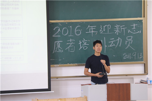 在06105召开了2016年秋学期迎新工作志愿者培训动员会。本次培训会由学院2016级辅导员何宗辉老师主讲,学院200余名迎新志愿者参加了会议。