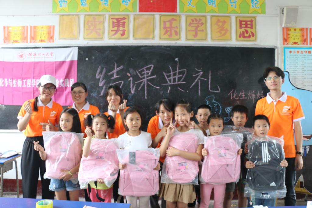 最后,实践团成员为东阳小学的同学们举办了结课典礼。结课典礼上,实践团成员将准备好的书包等文具亲手交到每一个小朋友的手里,带着对他们的美好祝愿结束了支教课程。
