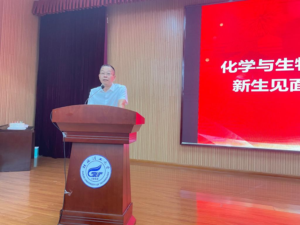 党委书记梁军致辞新学年,新生活,新开始!此次新生见面会,学院通过为新生代表赠送入学礼物、为当天生日同学送祝福的方式,体现出化生温度。希望新生尽快适应新环境、明确新方向、淬炼新本领、勇担新使命,成为德学兼备、能力卓越、拥有国际视野、涵养家国情怀的桂工人!