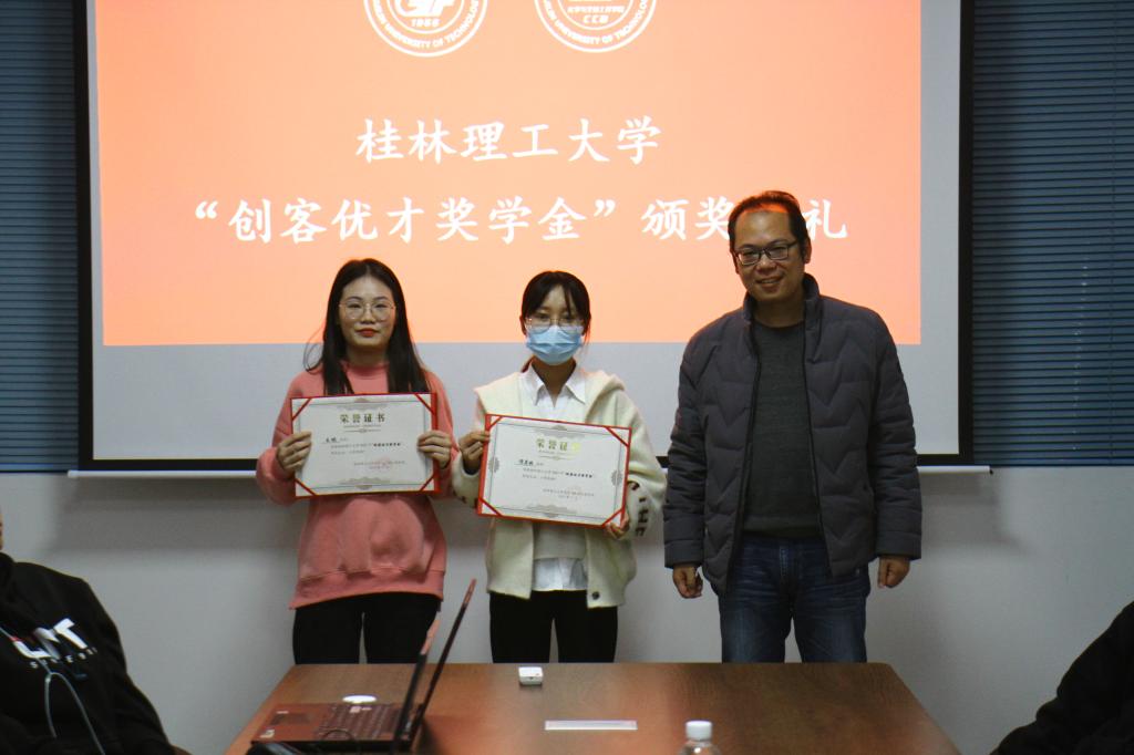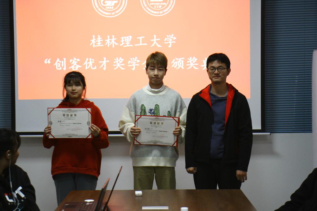 “创客优才奖学金”颁奖典礼,对6名品学兼优、品行良好的学生进行表彰,学院温玉清老师、黄斌老师、彭宁老师及学生代表参加了此次颁奖典礼。典礼由学院学生会学习部干事林叶主持。