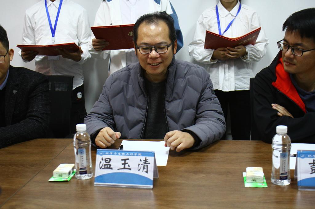 2021年“创客优才奖学金”表彰决定,由温老师、黄老师、彭老师为获奖同学颁奖。最后,由黄斌老师作总结,他指出,同学们要积极努力学习,戒骄戒躁,向优秀看齐,争取能够在能源化学工程专业上有所建树。