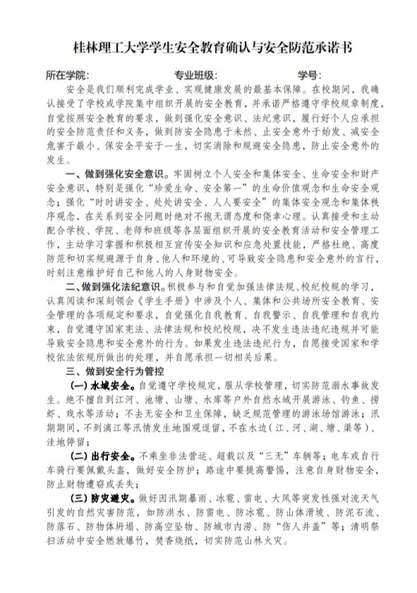 安全无小事,生命重如山。安全是一名大学生完成学业的重要保证,更是每一位大学生健康成长的基本条件,作为大学生,必须重视安全教育,增强自我保护意识,预防校园侵害,提高自护自救能力,针对当前普遍存在的大学生财产安全意识薄弱、轻信他人、财物保护观念差的现象,学院积极开展各项安全教育活动,组织全院学生签订安全承诺书,提高韩漫h
