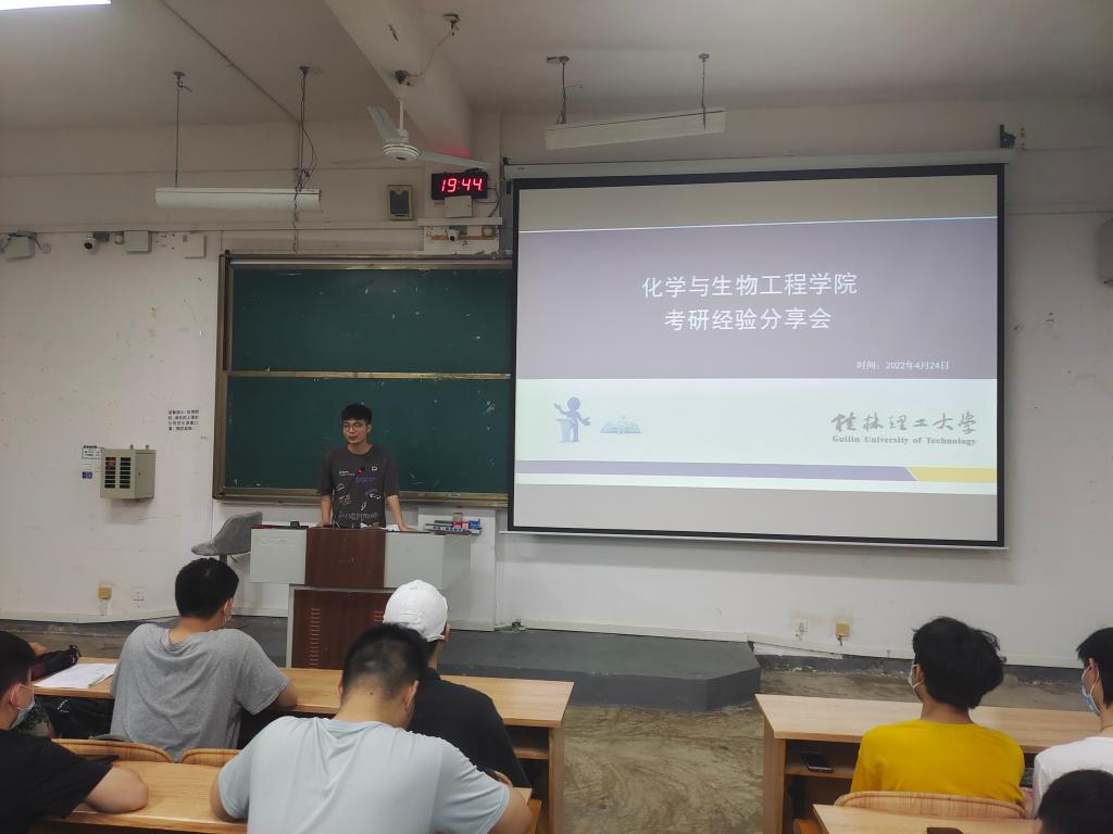 于雁山06104教室举办考研经验分享会,邀请了化学工程与工艺2018-卓越班吴汶泽、化学工程与工艺2018-2班刘天龙、能源化学工程2018-2班万嘉俊、应用化学2018-创新班颜文菊、化学工程与工艺2018-3班肖懿、生物工程2018-1班黄雨薏等六位考研成功的同学进行考研经验分享。2019级全体同学参加此次分享会。