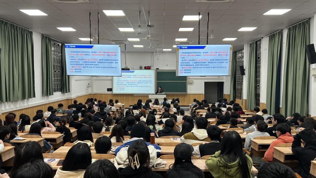 宣讲活动中,杨丽萍以“青年自当扶摇直上,衔星揽月逐日光”为题,围绕“千帆过尽,不坠青云”“君子行健,自强不息”“躬耕实践,报以琼瑶”三个方面,结合自身成长经历分享了自己在大学期间励志向上的心路历程。首先,她通过陈述自身的家庭情况,告诉青年同学不要因为经济的窘迫而气馁,国家、社会和学校有勤工助学、奖助学金等方式帮助在校生完成学业;其次,她讲述了大学不同阶段的奋斗历程,并分享了她的学科竞赛、保研面试等经验,鼓励在场学生主动投身科研报国行列,在科技创新、社会服务等各领域各方面工作中争当排头兵和生力军;最后,她号召同学们牢记习近平总书记对青年学生的殷殷嘱托,以奋斗姿态激扬青春,用坚毅的品格、顽强的斗志、奉献的精神来书写自强的人生。
