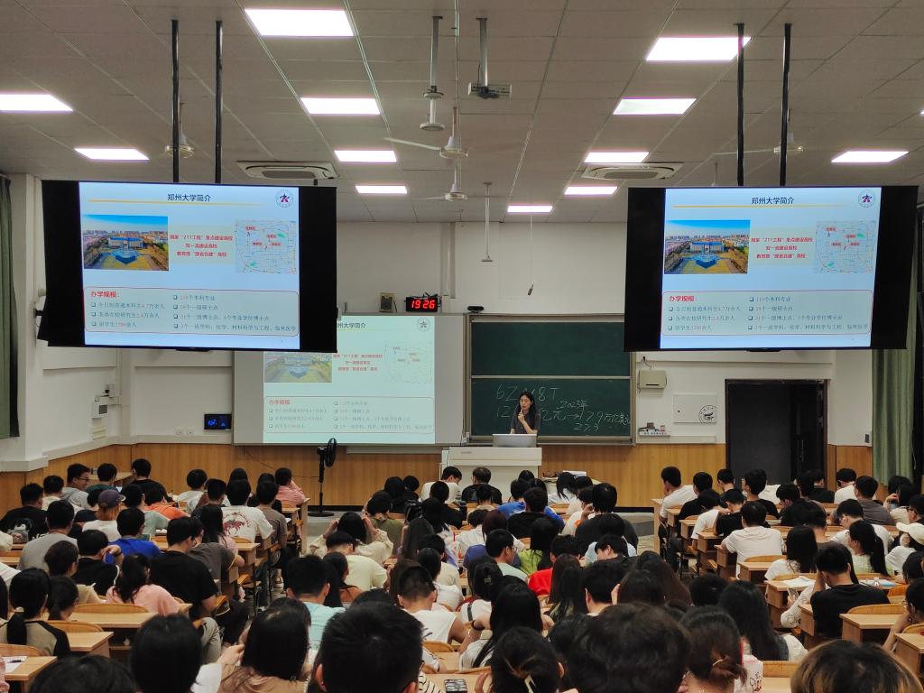 、师资力量、科研及学习平台、奖助政策、就业前景以及研究生招生政策等方面进行了宣讲,重点针对暑假夏令营的开展等招生政策进行了介绍,鼓励同学们积极报考郑州大学暑假夏令营。参会学生认真聆听,会后积极提问,就自己感兴趣的问题踊跃交流。