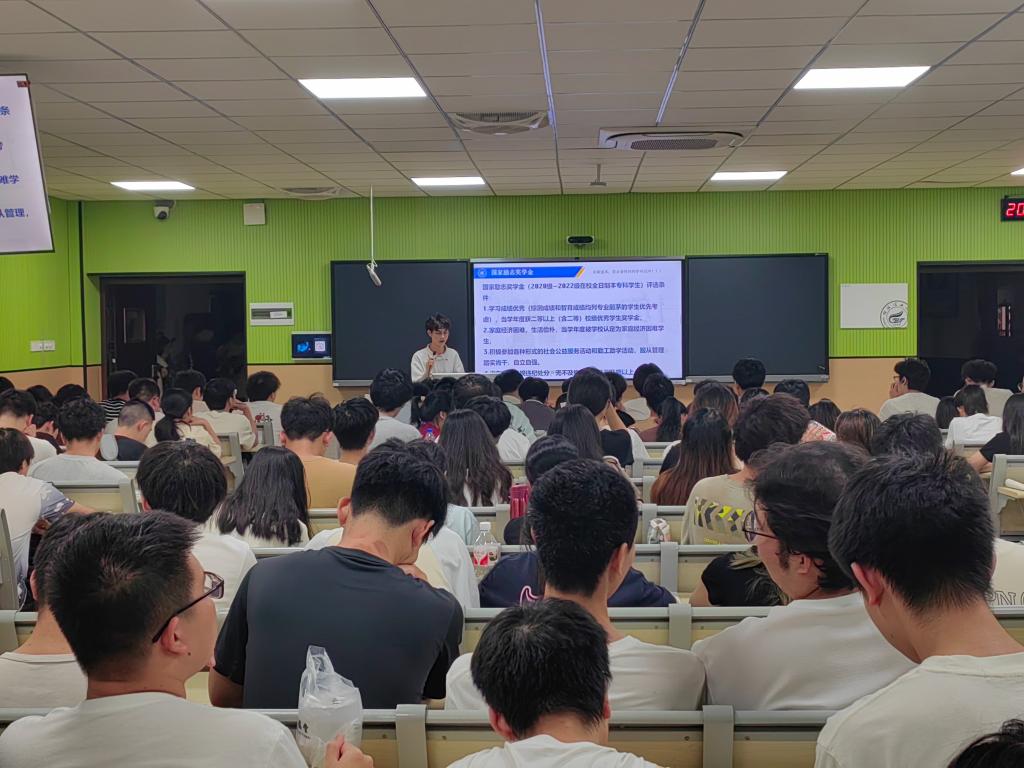 在雁山校区06306教室举办励志学生优秀事迹宣讲会。宣讲会由学院资助专项工作负责老师马亚博主持,并邀请三位励志学生代表分享学习经验,2023级近200名学生参与活动。