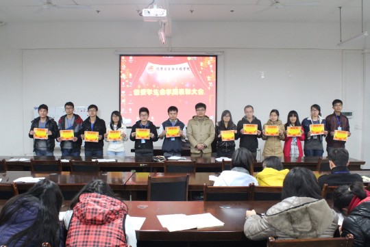 随后,由团委学生会各部门代表依次上台对本学期工作进行总结,并针对活动中的不足提出了中肯的建议。随后,学生会主席张海敏以及杨晓老师分别发言,并为先进个人进行颁奖。