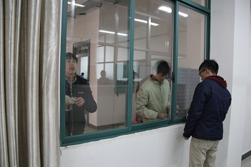 同学们认真擦洗窗户(一)