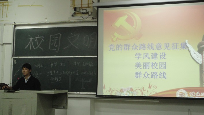 党的群众路线教育实践活动,进一步落实密切联系同学、服务同学的工作机制,切实做到知同学情、解同学忧、暖同学心,学院于10月30日晚在雁山校区05102教室举行群众路线方案意见征集会议,学院各宿舍代表参加了会议,学院何宗辉老师主持了会议。