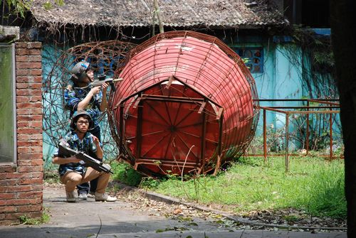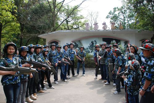 学生会二十余名同学乘车抵达位于七星公园的真人CS野战基地,参加了历时近三个小时的真人CS野战拓展训练。在野战基地的三名教官的带领下,同学们分成蓝红两组,进行了五场仿真战斗,包括抢夺高地,袭击敌首和丛林战等。在战斗过程中,同学们发挥出各自的优势,进行了智慧和力量的较量。