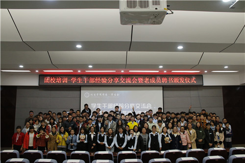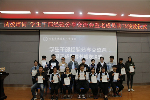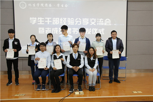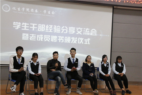 于逸夫楼501学术报告厅举办化生学院团委˙学生会新老成员经验交流会。本次活动由学生会副主席王一主持,出席本次活动的有第八届团委˙学生会各部门部长和干事以及第九届团委学生会全体成员。