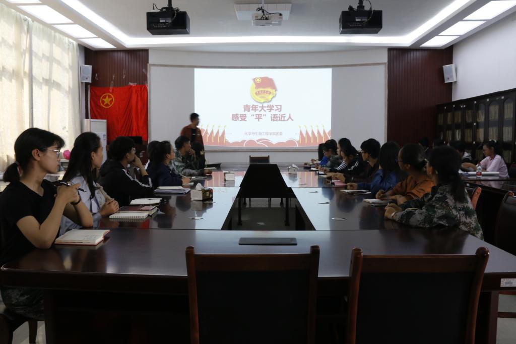 团委召集学院各团支部书记在雁山校区12栋12217会议室开展主题为“青年大学习,感受‘平’语近人”的示范性团日活动。
