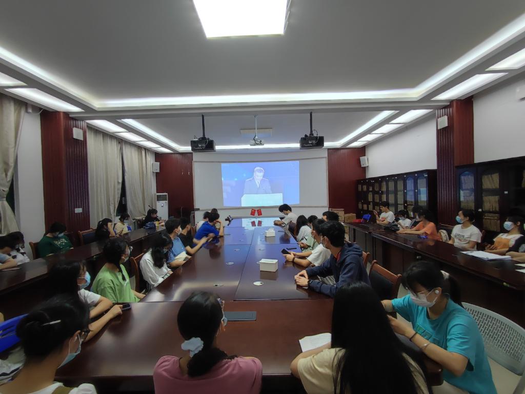 学生的创新创业能力,培养学生的创新创业意识,达到科研育人、实践育人的目的。4月12日晚,学院团委于12栋萃华楼12217会议室组织集中观看了第十七届“挑战杯”全国大学生课外学术科技作品竞赛闭幕式。参加本次活动有学院团委副书记王凯浩、学院团委、学生会、融媒体中心学生干部以及学院青马班部分学员。