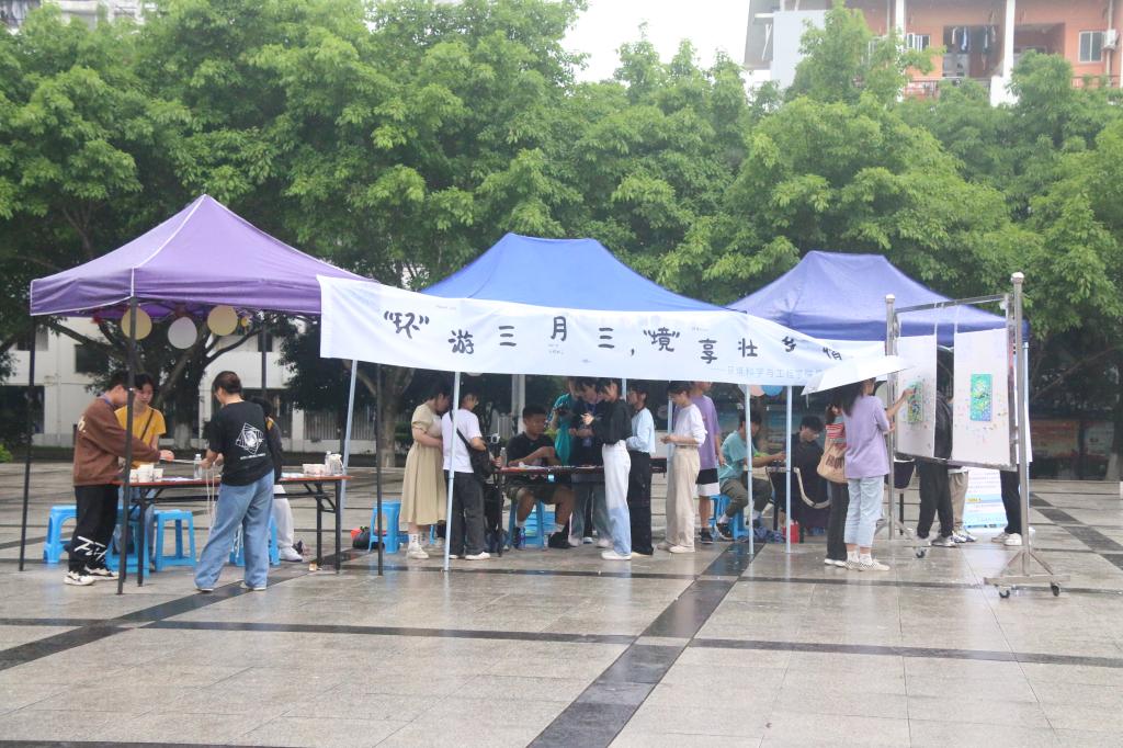 团委于2023年4月18日在三栋艺术学院前广场举办了“壮乡礼献,情满八桂”三月三游园活动。
