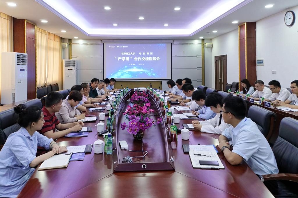 揭牌仪式前,双方围绕研究生联合培养、产学研合作、生物医药产业学院发展规划等议题进行校企交流座谈。座谈会上,中恒集团党委副书记、董事、工会主席梁建生为我校一行详细介绍了公司基本情况,双方就人才培养模式、人才引进战略等方面进行深入交流。双方共同表示应建立产学研合作和校企合作长效机制,加快实施创新驱动发展战略,推进科研成果、核心技术向市场转化,双方将本着“协同创新、优势互补、开放共享”的原则,围绕重大课题攻关、创新平台建设、高端人才培养等工作建立全面合作关系。
