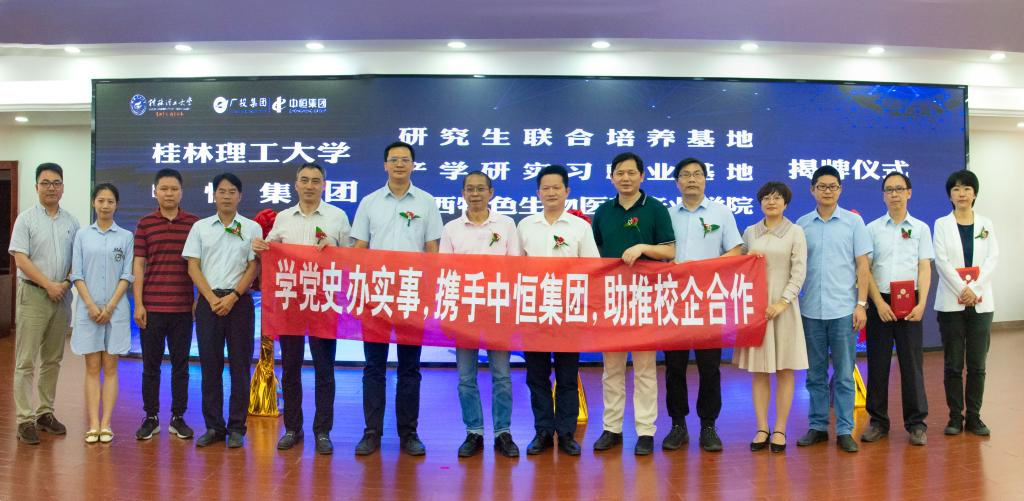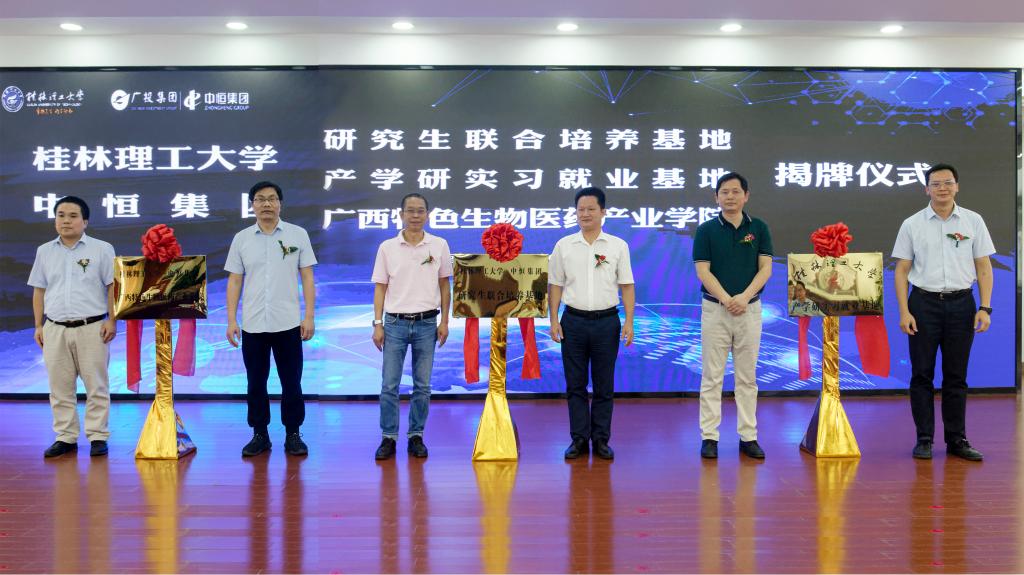 党委书记梁军、教务处副处长唐国强等一行人到广西梧州制药(集团)股份有限公司(以下简称“中恒集团”)考察交流,并与中恒集团举行研究生联合培养基地、产学研实习就业基地、广西特色生物医药产业学院揭牌仪式。