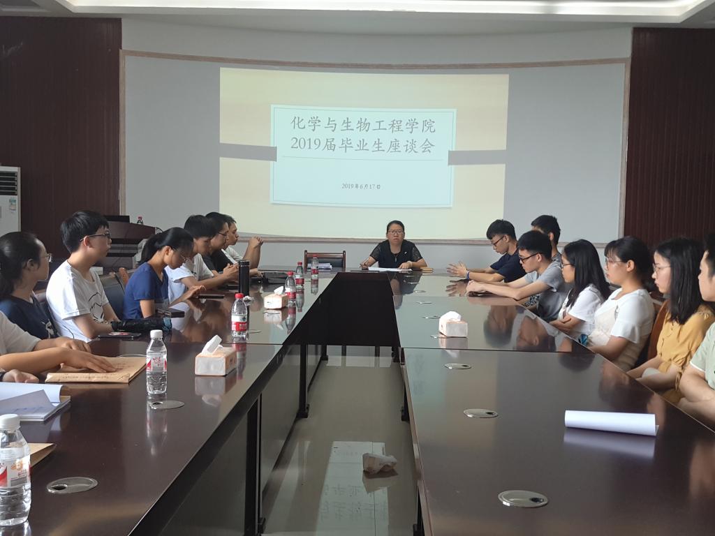 在12217会议室召开了2019届毕业生座谈会。学院党委副书记江玲、毕业班辅导员饶筠筠和毕业班学生代表参加会议,党委副书记江玲主持会议。
