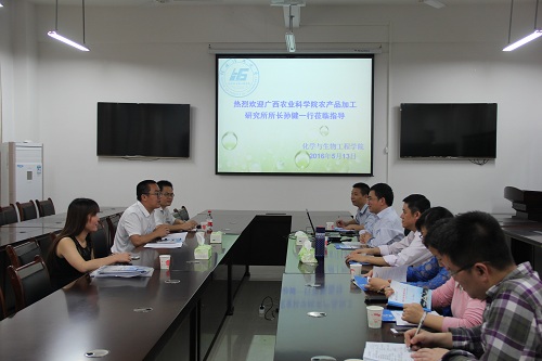 在学科建设、科学研究、师资队伍建设等方面的简要情况。孙健所长介绍了广西农业科学院农产品加工研究所的基本情况。双方人员还就联合培养学生、科研合作等问题进行了深入交流和探讨,并希望今后继续深入开展交流与合作。