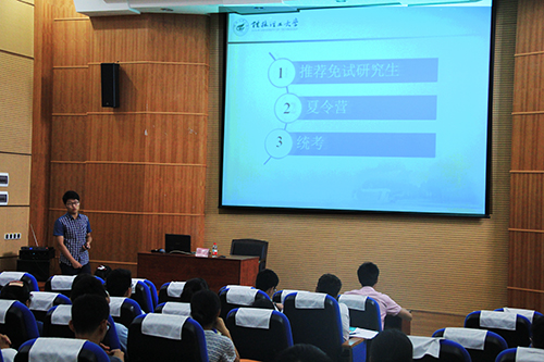交流会上,张芮以自己的考研复习计划为例,针对报考途径、流程、注意事项做了详细的介绍,同时结合自身经历,总结了考研成功的方法和复习技巧;朱谦则用结合自身跨专业考研的经历,从兴趣爱好以及实际能力等方面,对同学们的专业选择进行指导,并鼓励同学们既然选择了考研,就一定要坚持信念不动摇;最后陈雪妮则从免试攻读的角度介绍了免试攻读硕士的申请流程及需要具备的条件,鼓励同学们打好学习基本功,时刻做好准备。