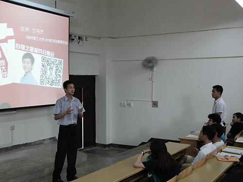 学生自立自强、努力奋斗的良好品质,2014全国大学生自强之星标兵获得者、我校旅游学院2011级学生甘书杰应邀在雁山校区05102教室为韩漫h