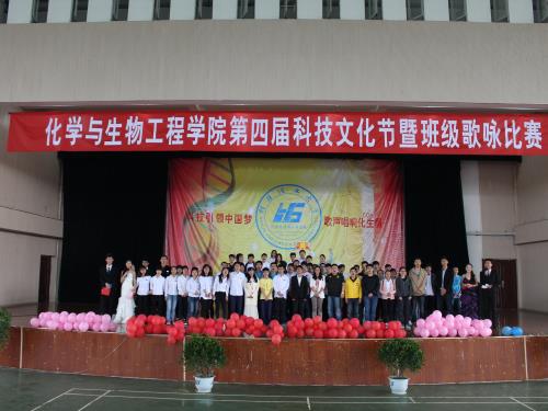 于4月25日早上九点在雁山校区体育馆举办以“科技引领中国梦 歌声唱响化生情”为主题的五四班级歌咏比赛暨第四届科技文化节开幕式。