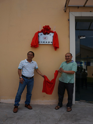 广西惠禹粮油工业有限公司实习就业基地揭牌仪式(左为学院代表梁军书记,右为公司代表孙立成副总经理)