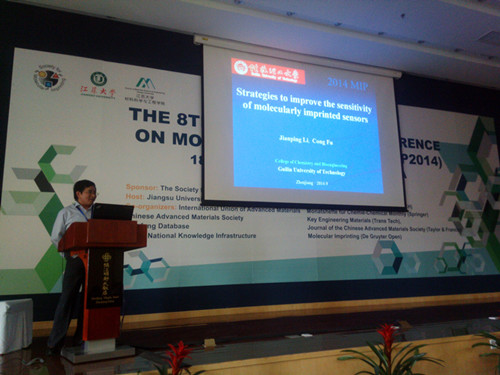 李建平教授等9月18日-21日出席了由国际分子印迹学会主办,江苏大学承办的第八届国际分子印迹会议(The 8th International Conference on Molecular Imprinting-MIP2014),并做了题为“Strategies to improve sensitivity of molecularly imprinted sensors”的主题报告(Keynote lectures)。
