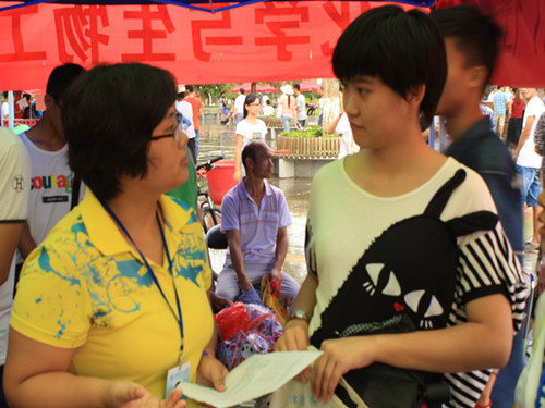 九月的骄阳也挡不住志愿者们的热情,在烈日下,志愿者们汗如雨下也毫无怨言。他们顶着烈日的烘烤在新生下车处等待,从新生下车到办理各种注册手续再到帮他们将行李提到宿舍,志愿者们为新生提供了最全面的一条龙服务。他们将一杯杯清水端到新生家长们的面前,自己却顾不得喝上一口,他们的无私奉献的精神,充分体现了韩漫h