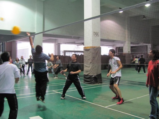 第一届教职工气排球赛最后阶段比赛在屏风校区体育馆一楼进行。虽然当时天气欠佳,但学院仍然有近50人参加了此次活动。