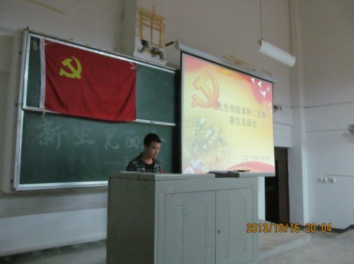交流会由一个支部同学制作的关于本科二支部风采展示的视频拉开序幕,然后支部宣传委员魏培贺同学向大家详细介绍支部的党员发展情况、日常管理制度,运作流程等。接下来,骆桥明、陈彦宏、吴丽丹、欧冰冰这四位优秀的学生党员代表就如何成为一名优秀的学生党员做了发言,并与新生们进行了经验交流。最后,伴随着大家热烈的掌声,此次新生见面会完满地落下了帷幕。