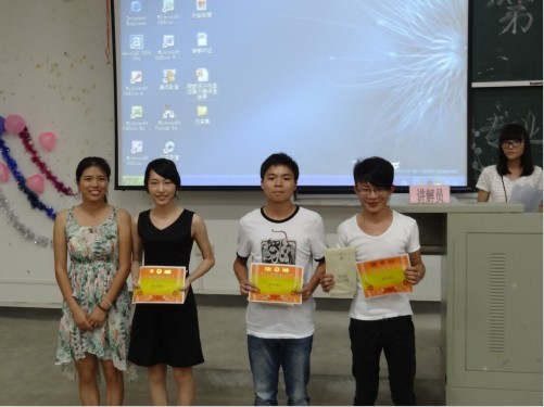 包括院团委学生会、学生党建工作办公室、化爱为生爱心公益协会、韩漫h以及楼栋管理委员会这五大学生组织的职能、日常管理工作、组织建设等。然后,学院大一到大三各专业共十一个团队一一上场,以PPT的形式展示各专业班级大学期间的风采,如团组织建设、班级建设、社会实践以及班级特色活动等。优美的背景音乐,各团队解说员的精彩讲解,绚丽多彩、独赋创新的视频、PPT,把现场观众带进了一个又一个优秀、团结奋进的集体。经过激烈的角逐,生物11-2班获得第一名,游立、陈乐娇及李永政同学获得最佳解说员奖项。