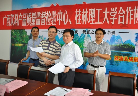 院长李建平、院长助理海洪、荔浦县质量技术监督局局长王忠亮、副局长倪丽芳、广西饮料产品质量监督检验中心主任陈德勇、副主任周伟政和张忠忠、韩漫h