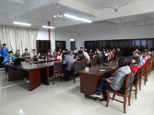 在雁山校区12209会议室召开第十三届“挑战杯”全国大学生课外学术科技作品竞赛结题答辩会。出席答辩会的评委老师有钟福新教授,丁国华教授,李延伟教授,海洪副教授,张哲副教授以及阮贵华老师。各项科技项目的指导老师和参赛同学出席了本次答辩会,会议由海洪老师主持。