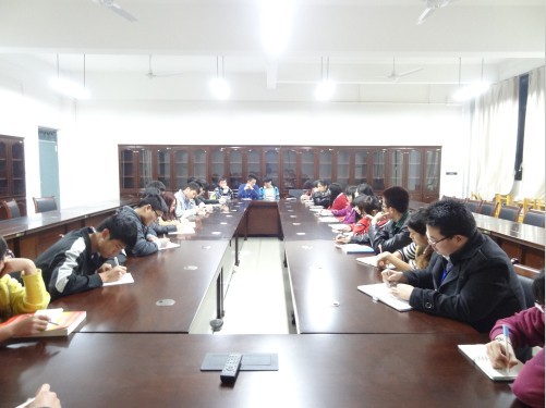 在雁山校区12210会议室召开团委学生会干部座谈会。会议由10级辅导员杨晓老师主持。