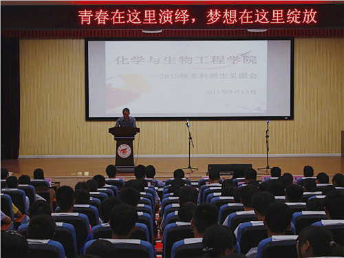 在雁山校区图书馆报告厅举行2015级本科新生见面会,出席此次见面会的有我们学院党委书记梁军、学院院长李建平、党委副书记陶剑飞、副院长张淑华、副院长潘宏程、副院长刘勇平及学院各专业教研室负责人、2015级各班班主任、各年级辅导员和全体2015级本科新生。见面会由党委副书记陶剑飞老师主持。