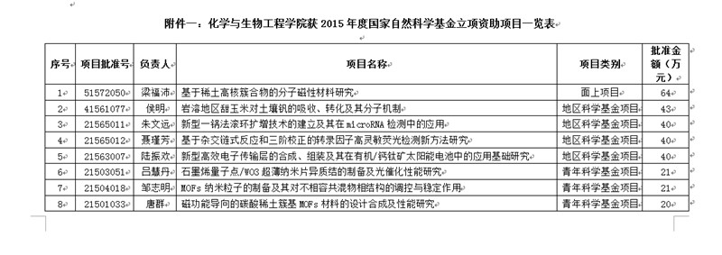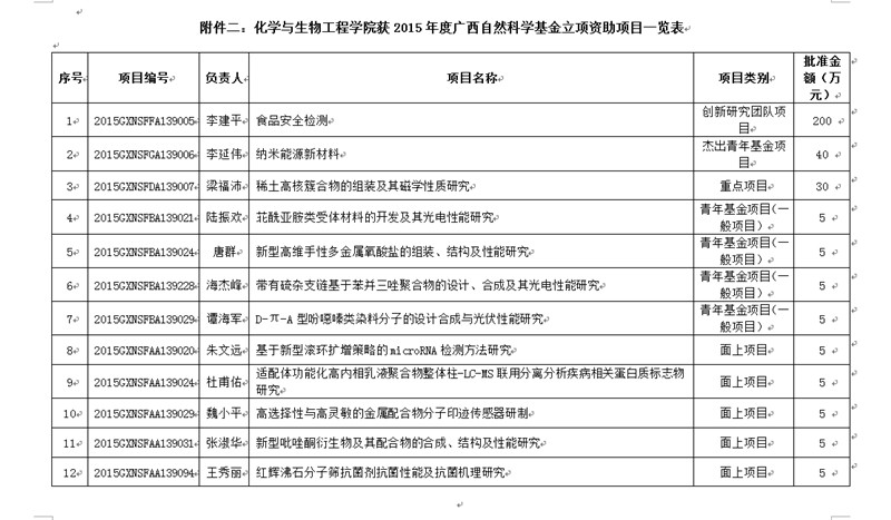 获2015年度广西自然科学基金立项资助项目12项,经费金额共计315万元(详见附件二)。其中创新研究团队项目、杰出青年基金项目为韩漫h